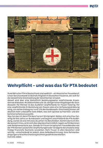 In jeder Ausgabe findest du die BVpta-Infoseiten mit Neuigkeiten aus der Verbandsarbeit, interessanten Berichten und Interviews sowie Informationen zu aktuellen Fortbildungen.